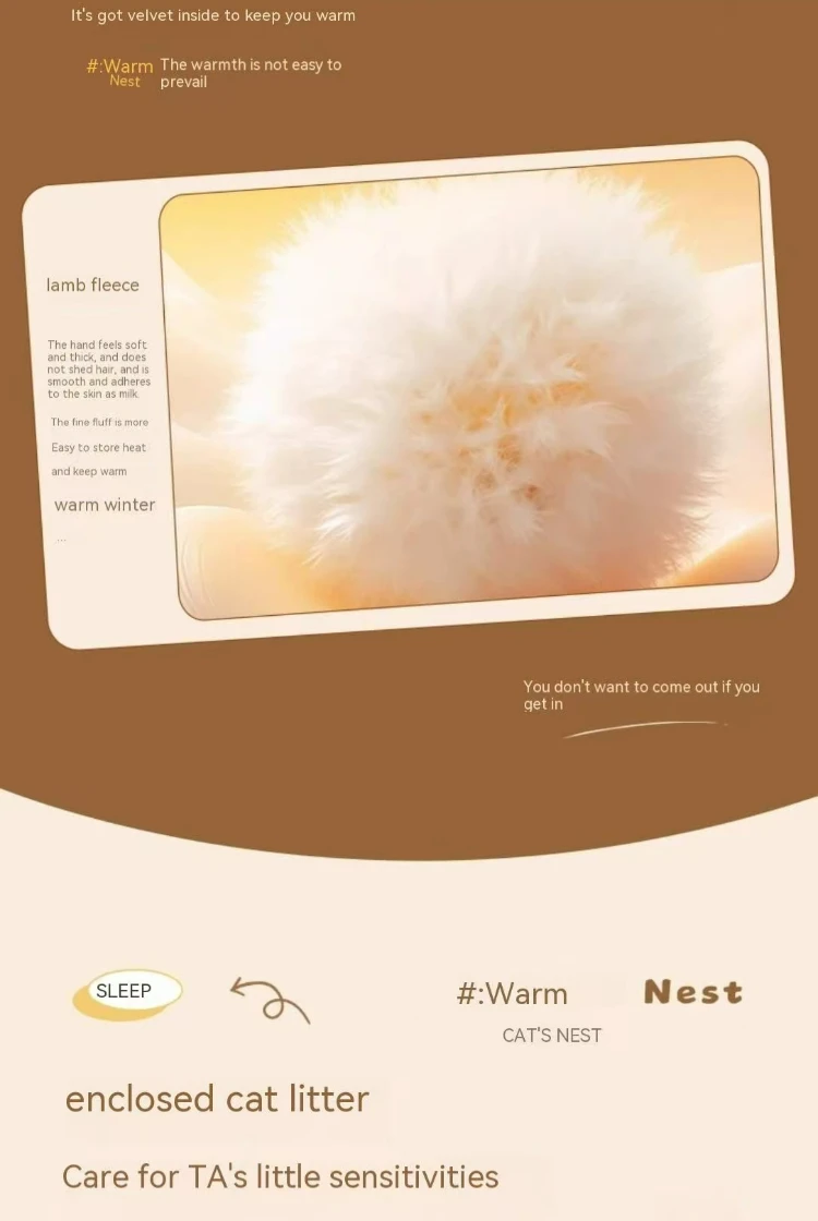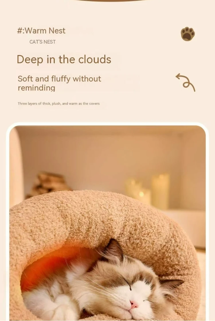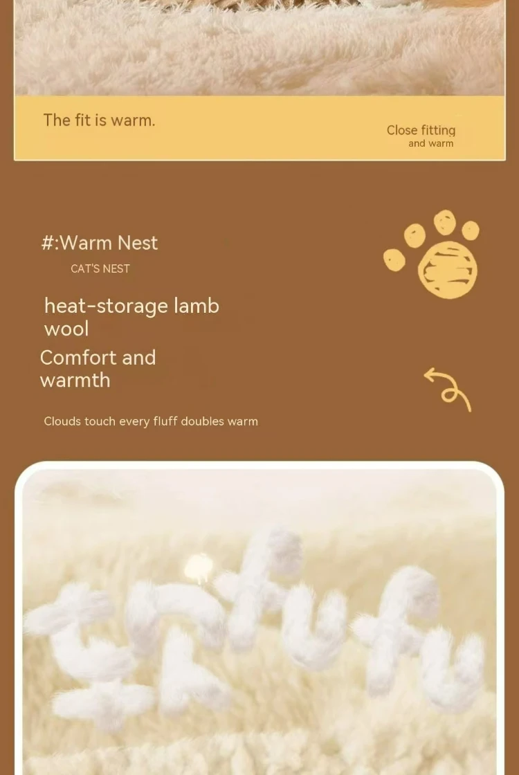 Skin friendlyEnjoy a luxurious experience with our Cat Bed Cave made of rich velvet exterior and adjustable lambskin lining. The soft and comfortable plush material is resistant to scratches and wears, extending the life of the bed |