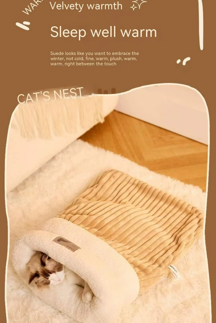 Cat Sleeping Bag for Indoor Cats, Cat Winter Warm Sleeping Bag, Self Warming Cat Bed, Calm and Cozy Cat Wrap, Pet Cat Nest Bed