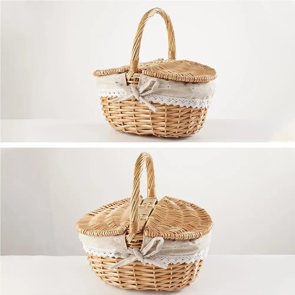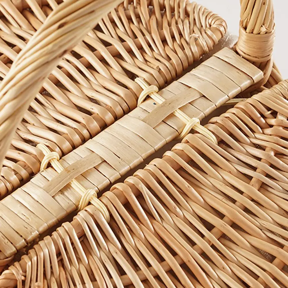 Handmade Wicker Picnic Basket With Handle Picnic Hamper Multi-Purpose Willow Woven Storage Box Outdoor Camping Fruit Basket
