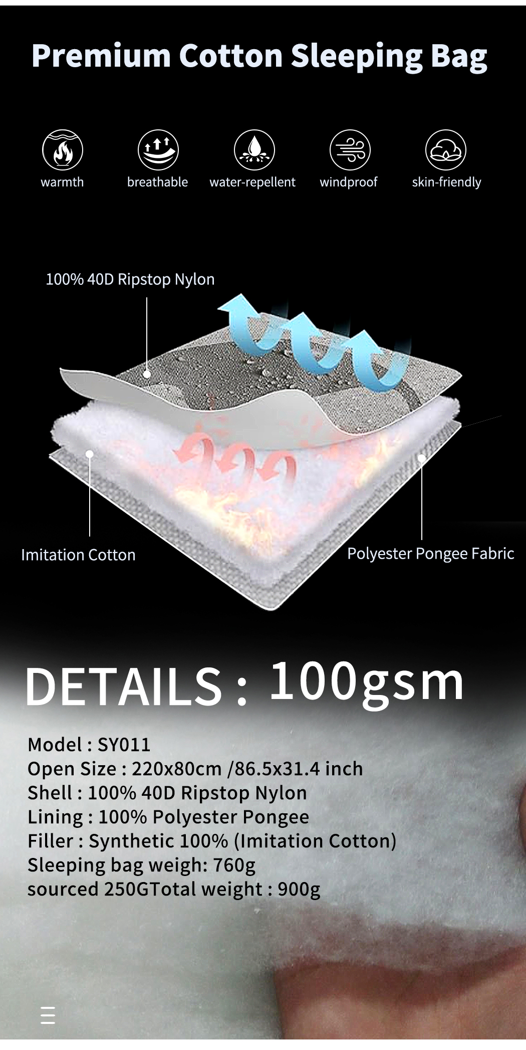 Sleeping bag weigh: 760g