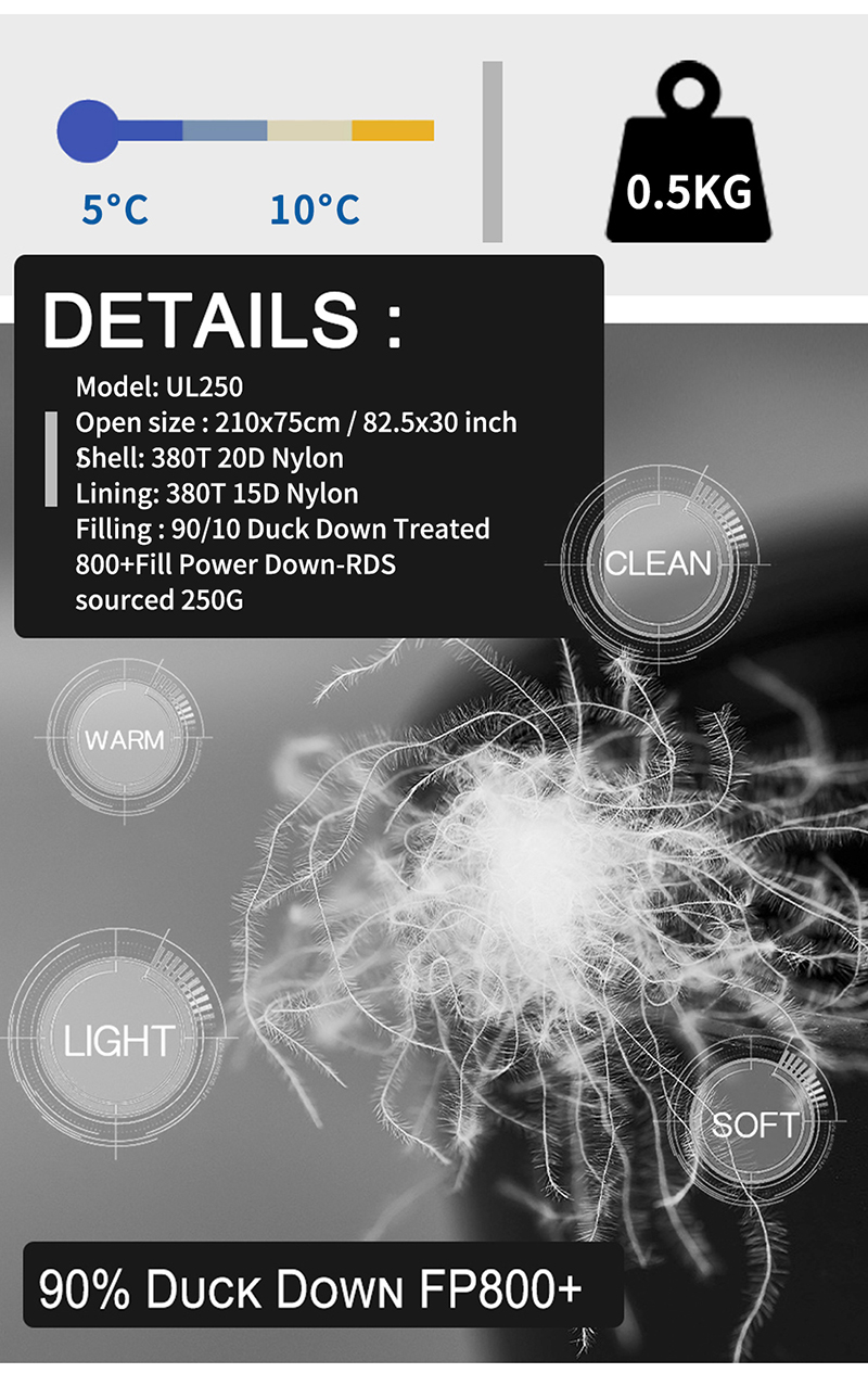 Filling:90/10 Duck Down Treated800+Fill Power Down-RDS