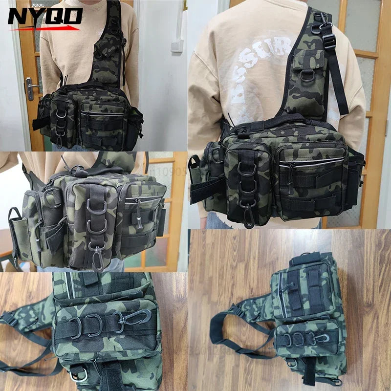 Men's Fashion Cross-body Waist Bag Outdoor Single Fishing Shoulder Bag with Rod Holder Gear Storage Bag Fishing Gear Backpack